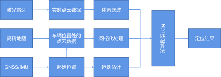 定位功能根據高精度地圖、傳感器等信息估計車輛位置,包括本車的絕對位置以及和靜態動態環境的相對位置等。傳感器的輸入來自于傳感器或者感知融合模塊,定位信息輸出至其它模塊,基于激光雷達點云定位模塊的框圖如圖3所示。在路端根據部署傳感器的GNSS信息,結合感知的目標位置通過坐標轉換實現對目標的定位,并可結合車端傳感器的信息實現對目標位置的精確定位。