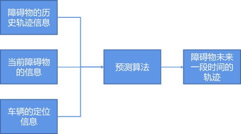 預測模塊通過障礙物的歷史狀態信息以及感知模塊感知的當前障礙物的信息結合車輛的位置和規劃信息,來預測障礙物的未來一段時間軌跡,其框圖如圖4所示。感知模塊作為預測模塊的上游,向預測模塊提供障礙物的位置、朝向、速度、加速度等信息。預測模塊根據感知模塊輸出的感知信息,通過自身算法給出障礙物未來的預測行為和預測軌跡,供下游規劃模塊進行自車軌跡的規劃。