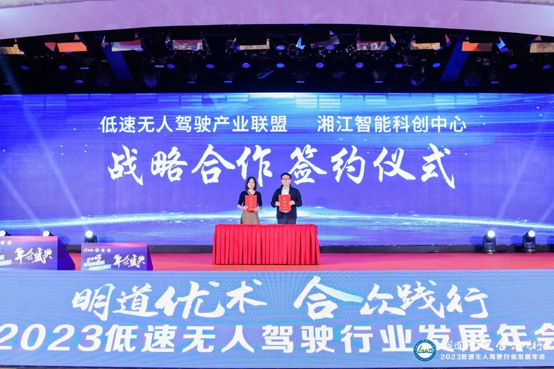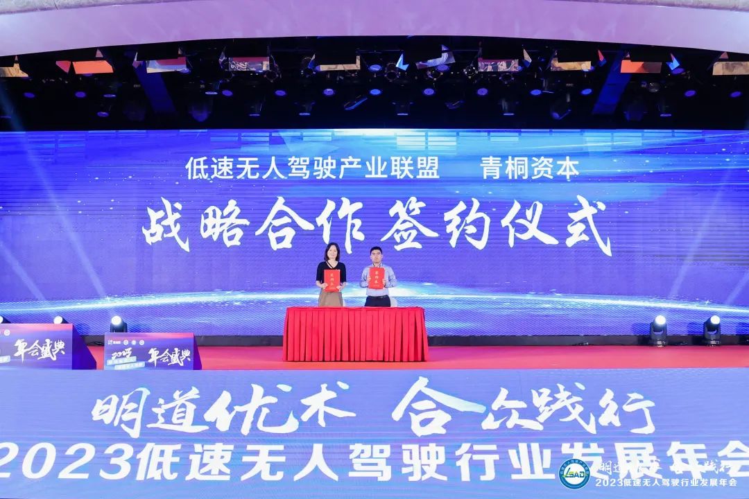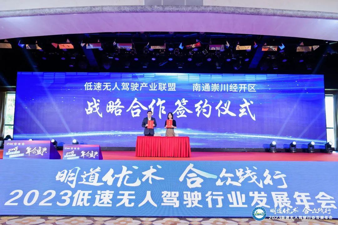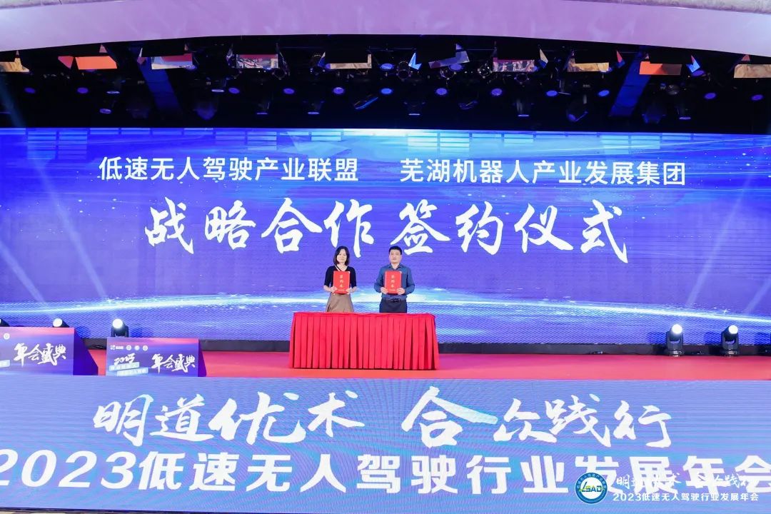 12月15日下午,在“2023(第三屆)低速無人駕駛行業發展年會”上,低速無人駕駛產業聯盟分別與南通崇川經開區、昆山陸家鎮人民政府、蕪湖機器人產業發展集團、湖南湘江智能科創中心、青桐資本舉行戰略合作簽約儀式。
