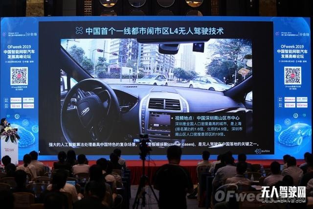 4月24日,在由中國高科技行業門戶OFweek維科網、高科會主辦,OFweek智能汽車網、OFweek新能源汽車網承辦的OFweek 2019 中國智能網聯汽車發展高峰論壇上,在本次大會的最后一場演講,AutoX首席運行官李卓通過《AutoX無人駕駛AI攻克一線城市鬧市區復雜路況》的主題演講,在現場展示了國內首例攻克一線城市復雜路況的L4級別自動駕駛技術。