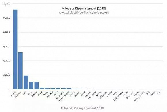 而根據美國加州車管局DMV公布的數據,通用Cruise 2019年全年測試44萬7641英里,期間只出現了86次自動駕駛功能脫離,算下來,Cruise去年人為干預頻次為 0.19 次/千英里,仍然僅次于 Waymo0.09 次/千英里,排名第二。