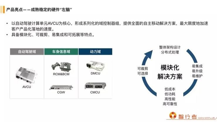 下圖為各域包括的控制器,以自動駕駛計算單元AVCU為核心,形成系列化的域控制器組,提供全面的自主移動解決方案,最大限度地加速客戶產品化落地的速度。具備模塊化、可裁剪、易集成和可拓展等特點。