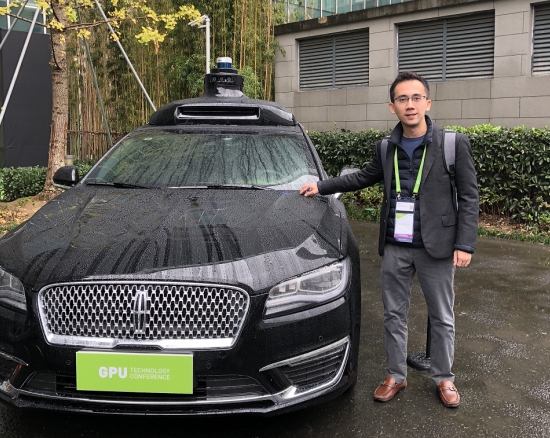 圖為肖健雄與AutoX無人駕駛原型車