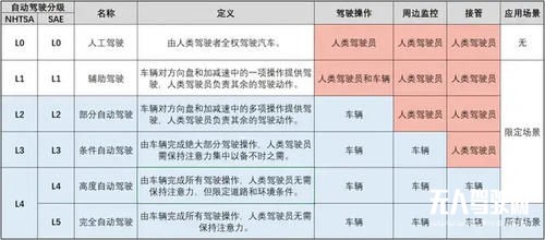 根據美國NHTSA標準,將汽車駕駛分為6個等級。