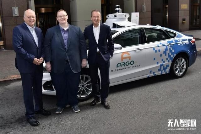 從左至右:福特汽車總裁兼CEO韓愷特、Argo AI創始人兼首席執行官布萊恩•塞爾斯基(Brian Salesky)、大眾汽車集團CEO迪斯博士