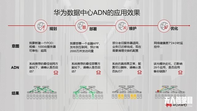 華為通過研究金融客戶業務場景和痛點,推出數據中心網絡自動駕駛網絡方案(AutonomousDriving Network,簡稱ADN),從三個方面真正解決了用戶的難題: