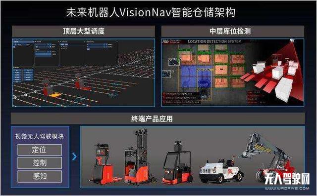 基于在視覺技術上的多年理解和沉淀,目前未來機器人已經開發出五大類無人駕駛工業車輛標準產品,包括托盤式無人叉車、平衡重無人叉車、前移式無人叉車、電動無人牽引車及內燃重載無人拖車,適用于全品類存量工業車輛無人化升級的通用視覺無人駕駛模塊,和適用于多層次系統對接的中控調度系統及用于多對象識別的庫位檢測系統,全流程、多維度幫助客戶以高性價比實現物流節點的倉儲無人化。