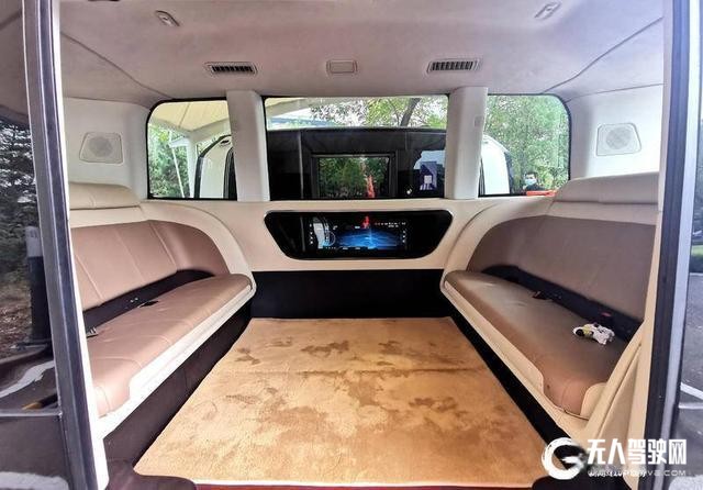 這是一輛新能源電動車,內部都是皮質座椅,每輛車可以乘坐6人,“商務版”座椅還帶有智能加熱、通風、按摩等功能,充滿了科技感。