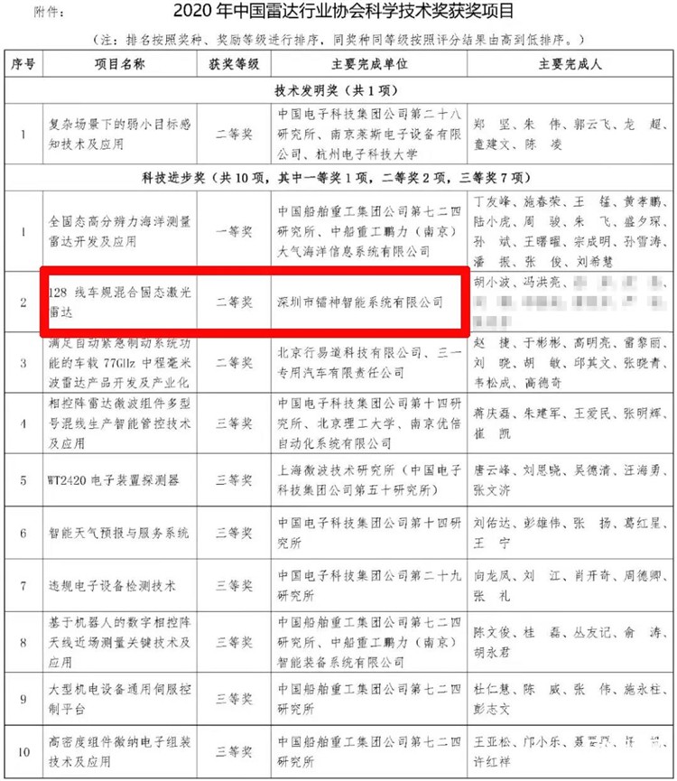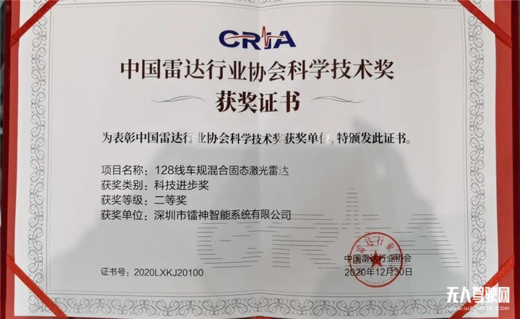 此外,鐳神智能憑借領先的技術研發和精湛的產品工藝,其128線混合固態激光雷達也榮獲了首屆中國雷達行業協會科學技術獎二等獎,頒獎典禮于4月23日上午在2021第九屆世界雷達博覽會上同期舉辦。