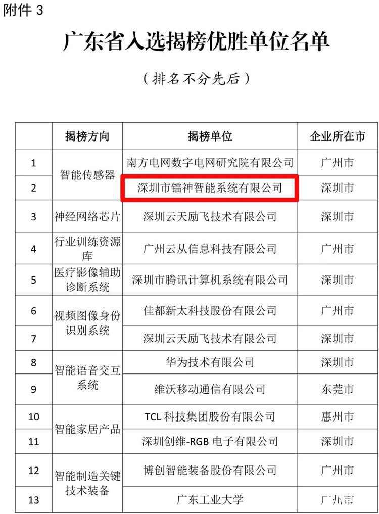 大會上,對近日工業和信息化部辦公廳印發的新一代人工智能產業創新重點任務揭榜優勝單位中,廣東省入選的13個優勝項目進行了表彰,鐳神智能、華為、騰訊、南方電網等企業代表廣東人工智能產業尖端實力榮耀登榜!