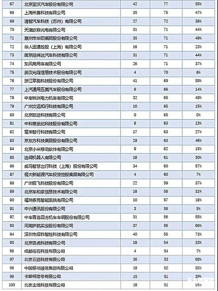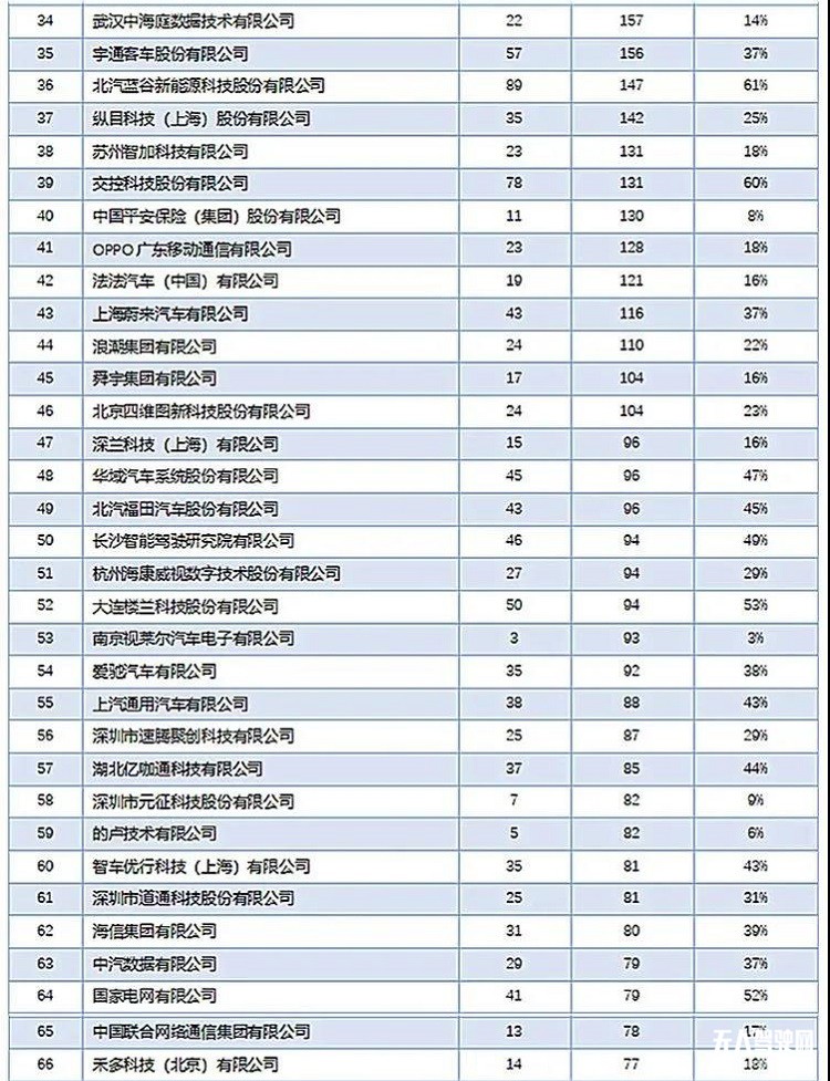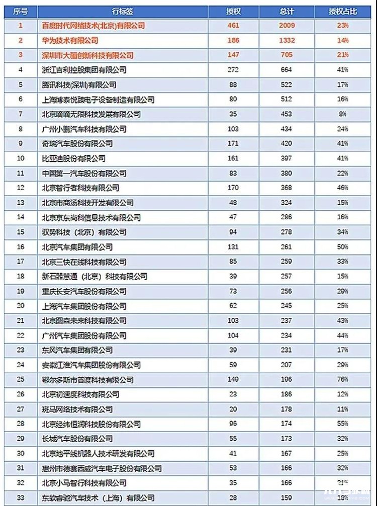 圖片表: 2021年中國自動駕駛專利排行榜TOP100