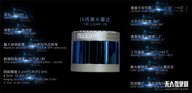 值得一提的是,TM-LIDAR-16是全球首款能在極寒地區工作的16線激光雷達。
