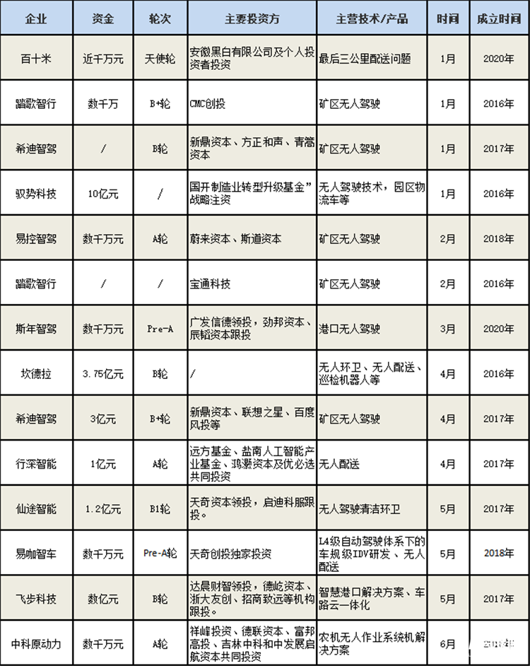 表:2021年上半年低速無人駕駛行業融資情況(本表粗略統計,如有未完善之處,請指正?。?/span>