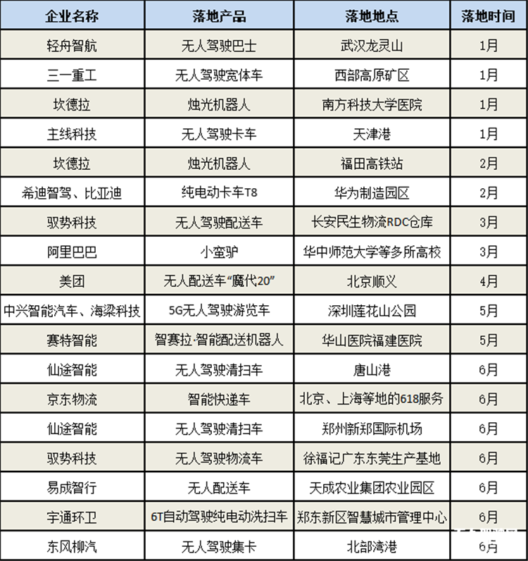 表:2021年上半年低速無人駕駛行業產品落地情況(本表粗略統計,如有未完善之處,請指正?。?/span>