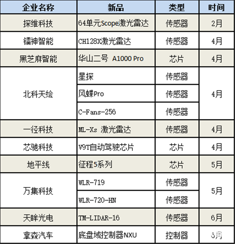 表:2021年上半年低速無人駕駛行業零部件企業新品發布情況(本表粗略統計,如有未完善之處,請指正?。?/span>