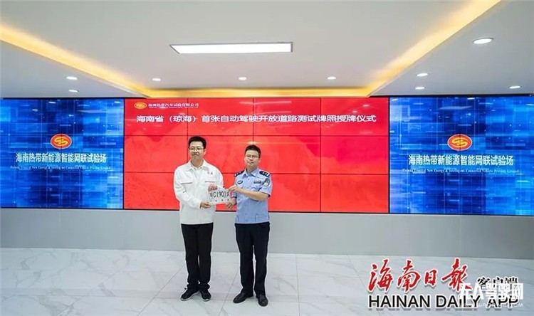 導語:8月25日,海南省首張智能汽車道路測試牌照授牌儀式在位于瓊海市的海南熱帶汽車試驗有限公司(海南試驗場)舉行。此舉標志著海南自動駕駛智能網聯汽車進入自動駕駛界別取得新突破。