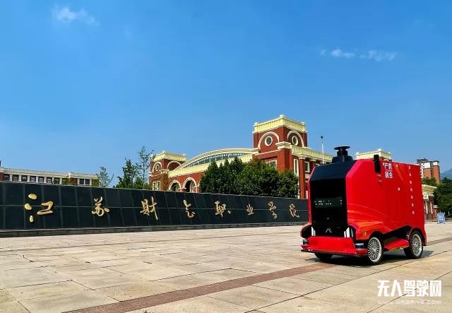 得益于發達的物流網絡,“輕裝上學”是現在很多學生選擇的報到方式。這位身披紅甲的“快遞小哥”就是在江蘇財會職業學院校園內為學生配送包裹的新晉網紅,這種無人駕駛配送車在連云港高校是第一家。