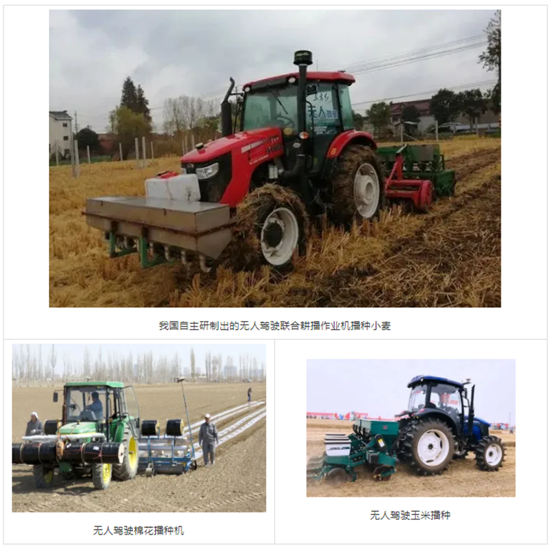 2019年11月,我國自主研制出的無人駕駛聯合耕播作業機,并于當年正式應用于小麥生產。無人駕駛聯合耕播作業機可實現自動耕播、施肥、除草等一系列農業生產工序,在田間可以自動調頭和轉彎,自動后退對行,一次旋耕深度可達22公分左右,且施肥均衡、播種深度和播種帶寬一致。廣泛應用在稻麥生產,徹底顛覆了農業生產現狀,改變傳統落后的作業方式,是我國稻麥生產上又一次質的飛躍。