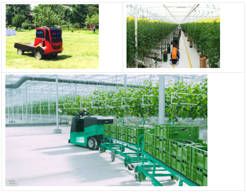 無人運輸車運用在田間、溫室,除了運輸農作物產品,還可以運輸秧苗、肥料等耕種原料。特別在現代化農業溫室,投入使用后作業效率更高。