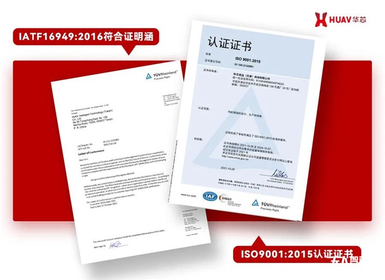 近期,華芯位于天津的生產中心——華芯拓遠(天津)科技有限公司(以下簡稱為“華芯生產中心”)順利獲得由TÜV Rheinland頒發的IATF16949:2016質量管理體系標準符合證明函,以及ISO9001:2015質量管理體系認證證書。