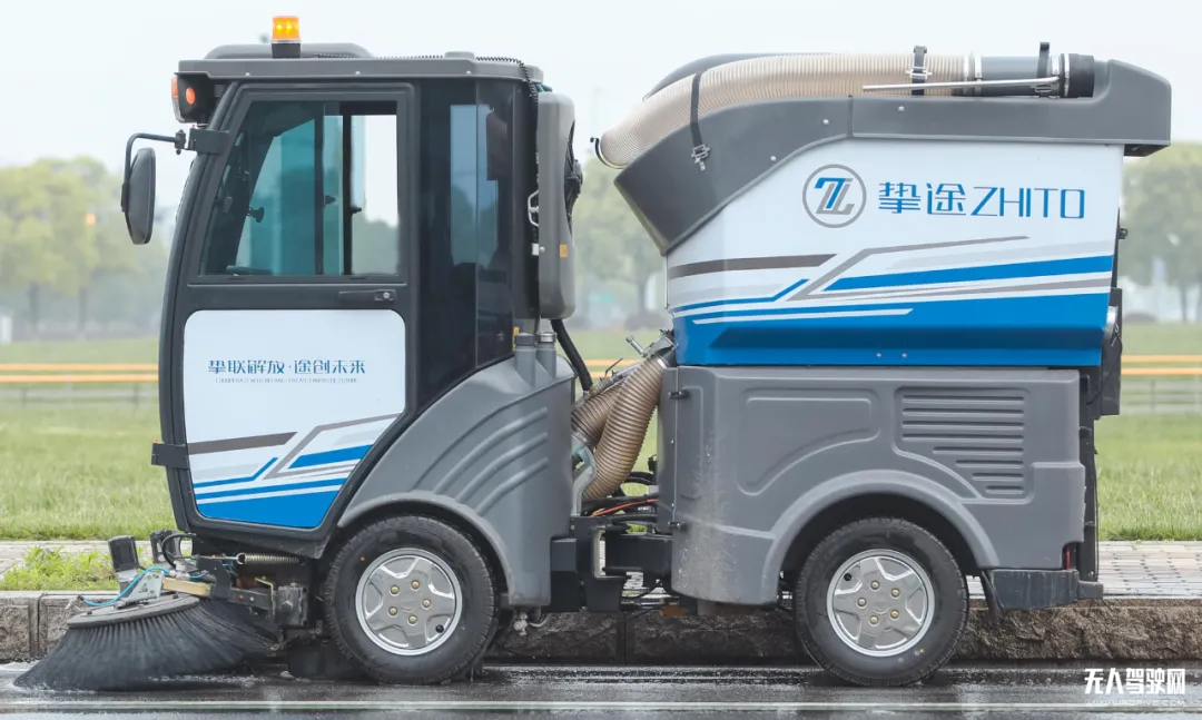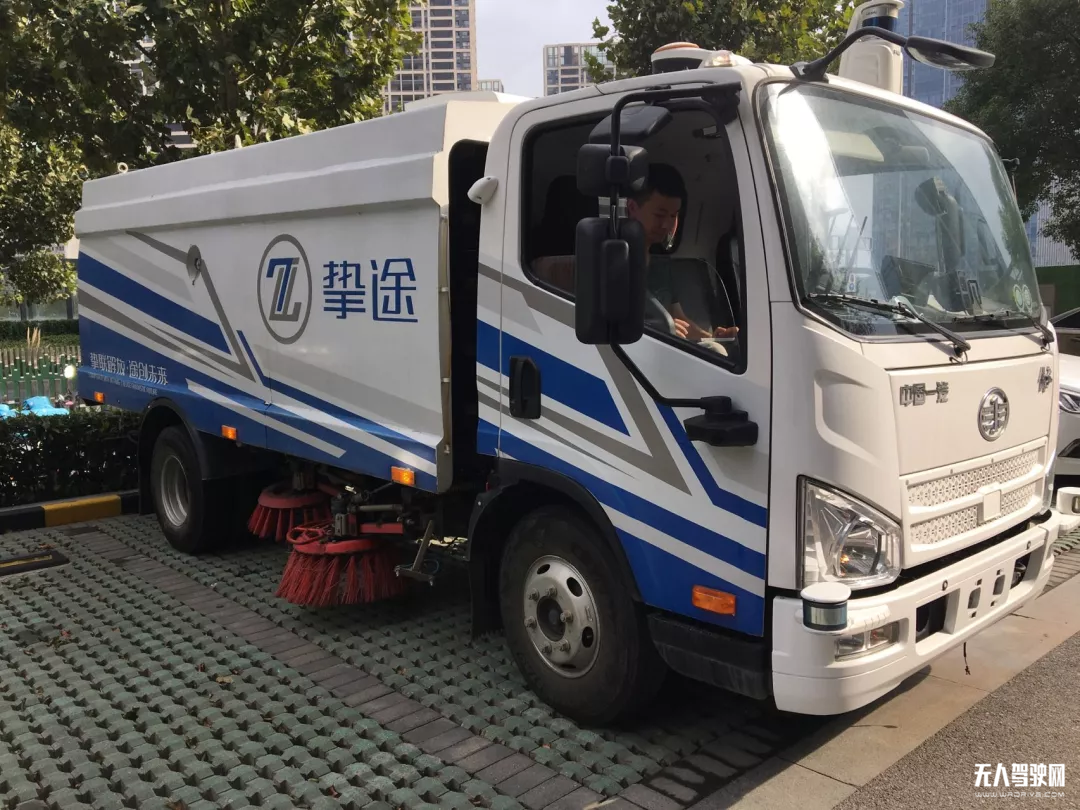 摯途無人駕駛清掃車,基于一汽解放J6F的線控平臺打造,配備毫米波雷達和激光雷達傳感器等車規級智能硬件,通過多層冗余,實現作業區域環境感知和避障行駛,通過自動起步、自動作業及自動停車,實現環衛清掃智能化。