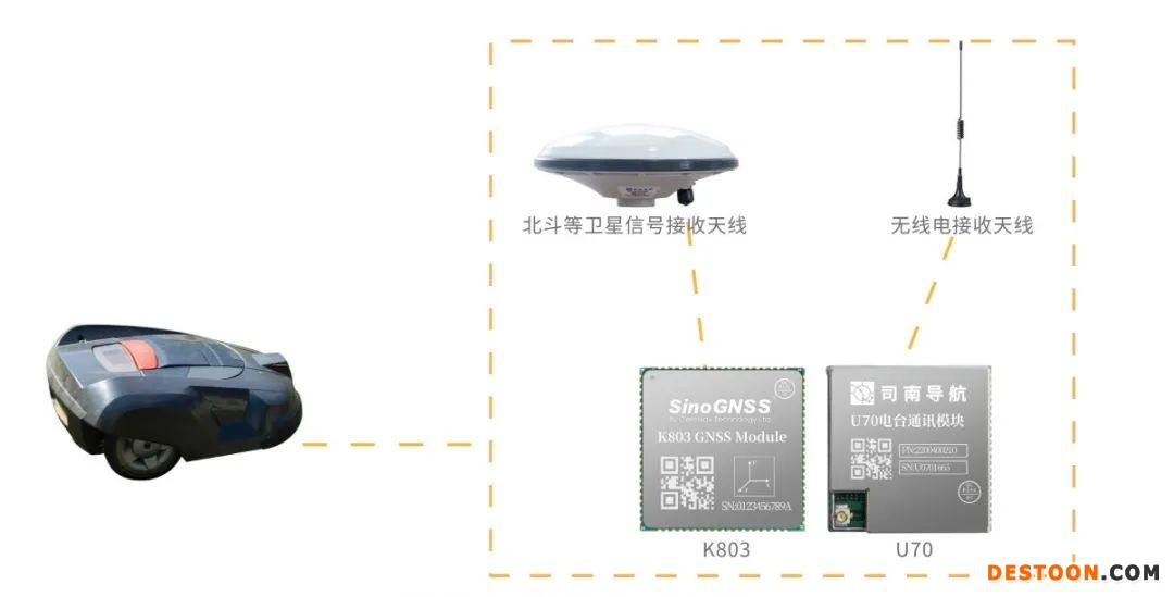 上海司南衛星導航技術股份有限公司基于K8系列北斗/GNSS高精度模塊,利用GNSS衛星(中國北斗、美國GPS、俄羅斯GLONASS、歐盟Galileo等多星系統)的定位數據輔助割草機進行現場作業,在作業過程中實時提供精準的位置信息,從而實現控制割草機按照設計路徑行駛,為割草機的自動化作業提供位置等信息的支持。