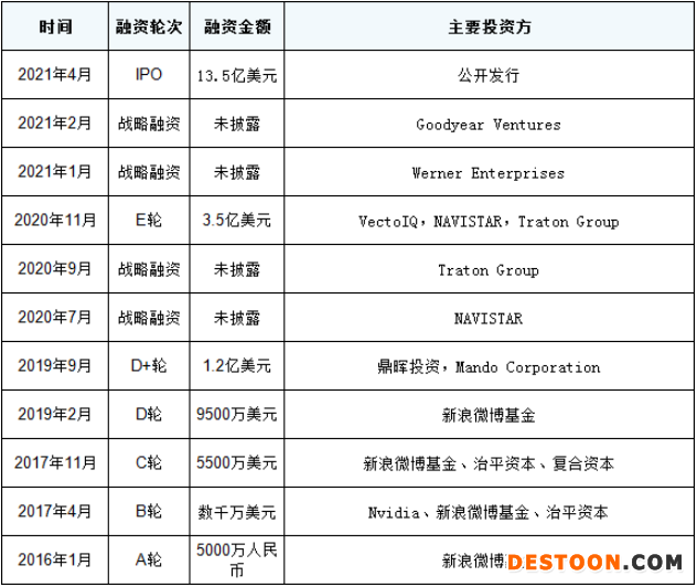 2021年4月15日,全球無人駕駛卡車企業圖森未來正式掛牌美國納斯達克,成為全球“自動駕駛第一股”。圖森未來股票代碼TSP,發行價為40美元,此次發行3378.4萬股,募資總額為13.5億美元。
