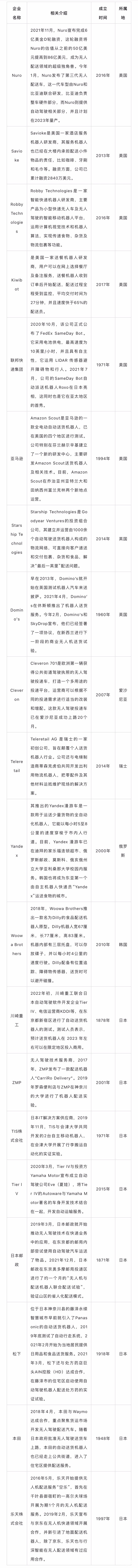 國外20+企業加速無人配送布局