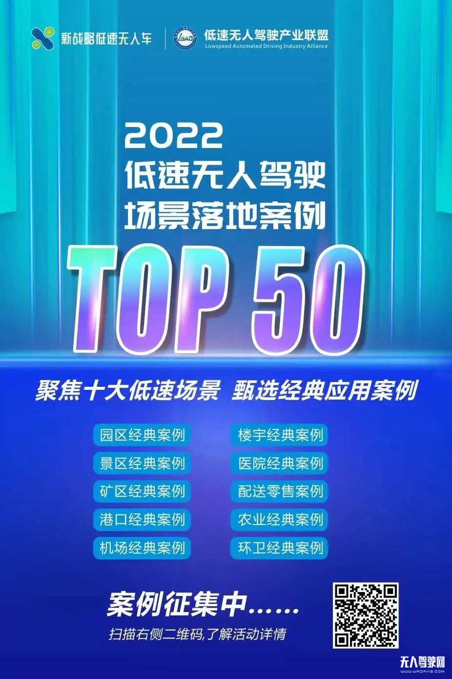 樹立應用標桿,打造低速無人駕駛各個賽道經典案例樣板形象,提振行業信心,錘煉行業影響力品牌,低速無人駕駛產業聯盟還特別推出了“2022低速無人駕駛場景落地案例TOP50”甄選活動,入選案例將匯編成冊,面向全行業尤其是終端用戶、投資機構、政府機構等發行。