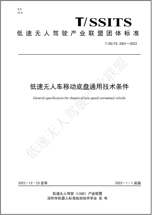 T/SSITS 2001—2022 《低速無人車移動底盤通用技術條件》