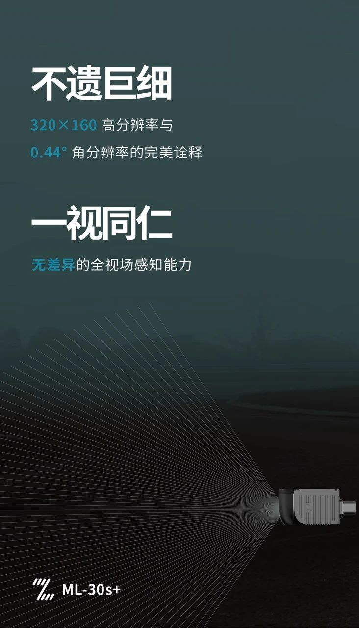 超廣視場角、圖像級的分辨率、全新面向車載的軟硬件架構、兼顧美觀與性能的造型設計、專用工程化解決方案,ML-30s+ 將為自動駕駛帶來極致的補盲激光雷達產品體驗。
