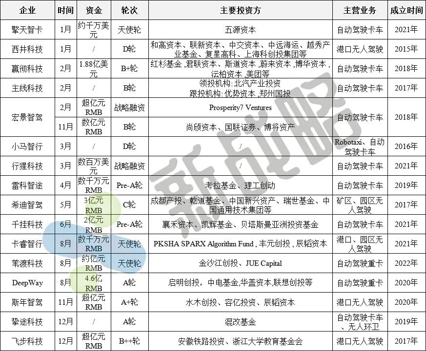 2022年國內自動駕駛卡車企業融資情況(據公開信息不完全整理,未完善之處請指正!)