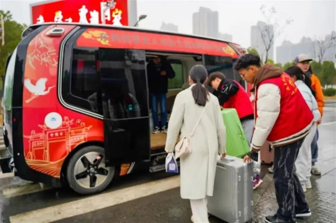 近期,武漢城市職業學院開學,兩輛無人駕駛智能小車忙碌于校門和宿舍之間,為返校學生提供一站式行李運送服務。無人駕駛擺渡車內沒有駕駛位、方向盤、離合器和剎車,僅有一個操作面板,兩排座位對向排列,可供6名同學落座,而座位之間有著超大容量。