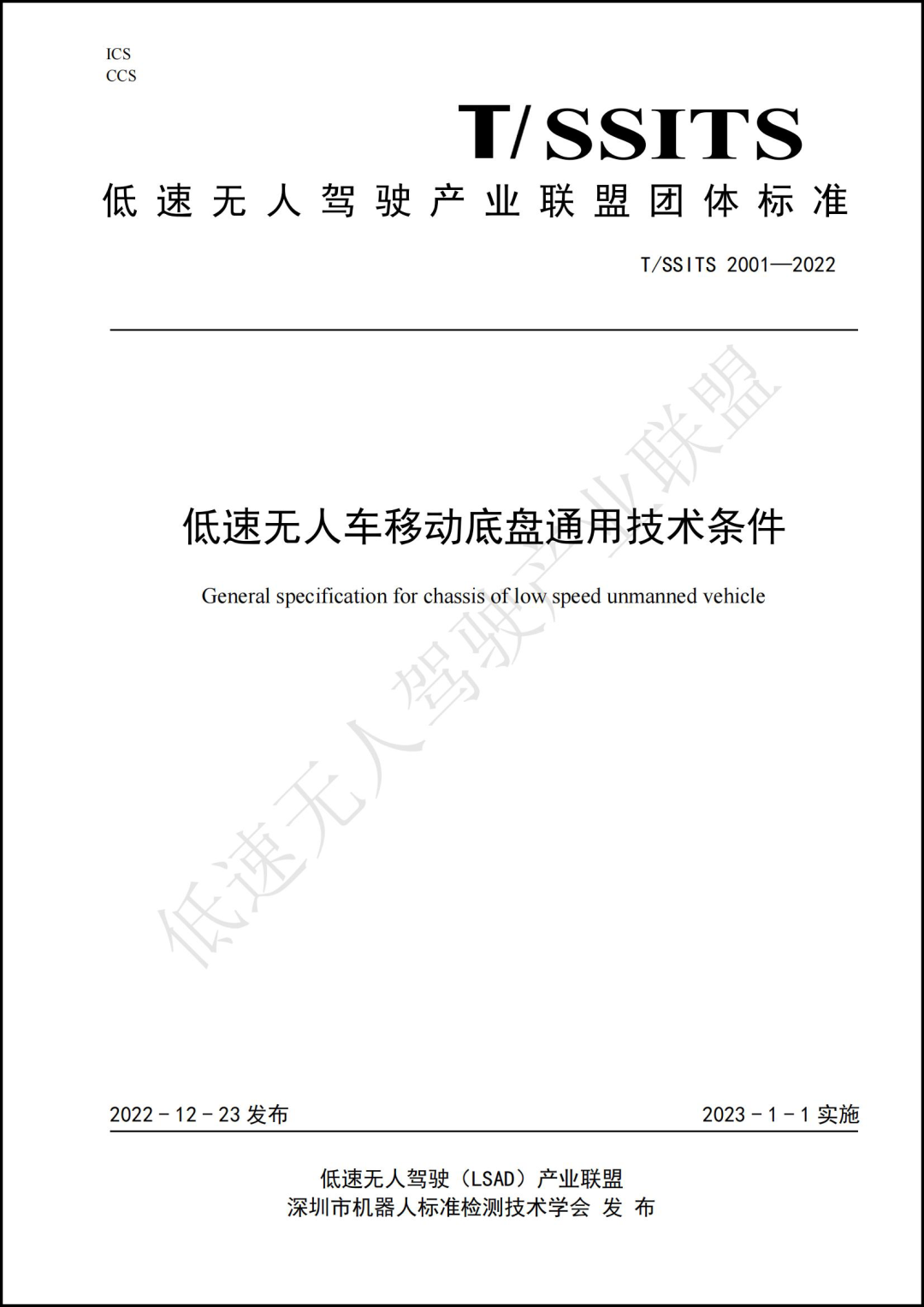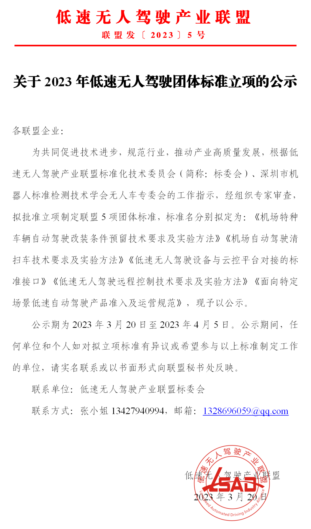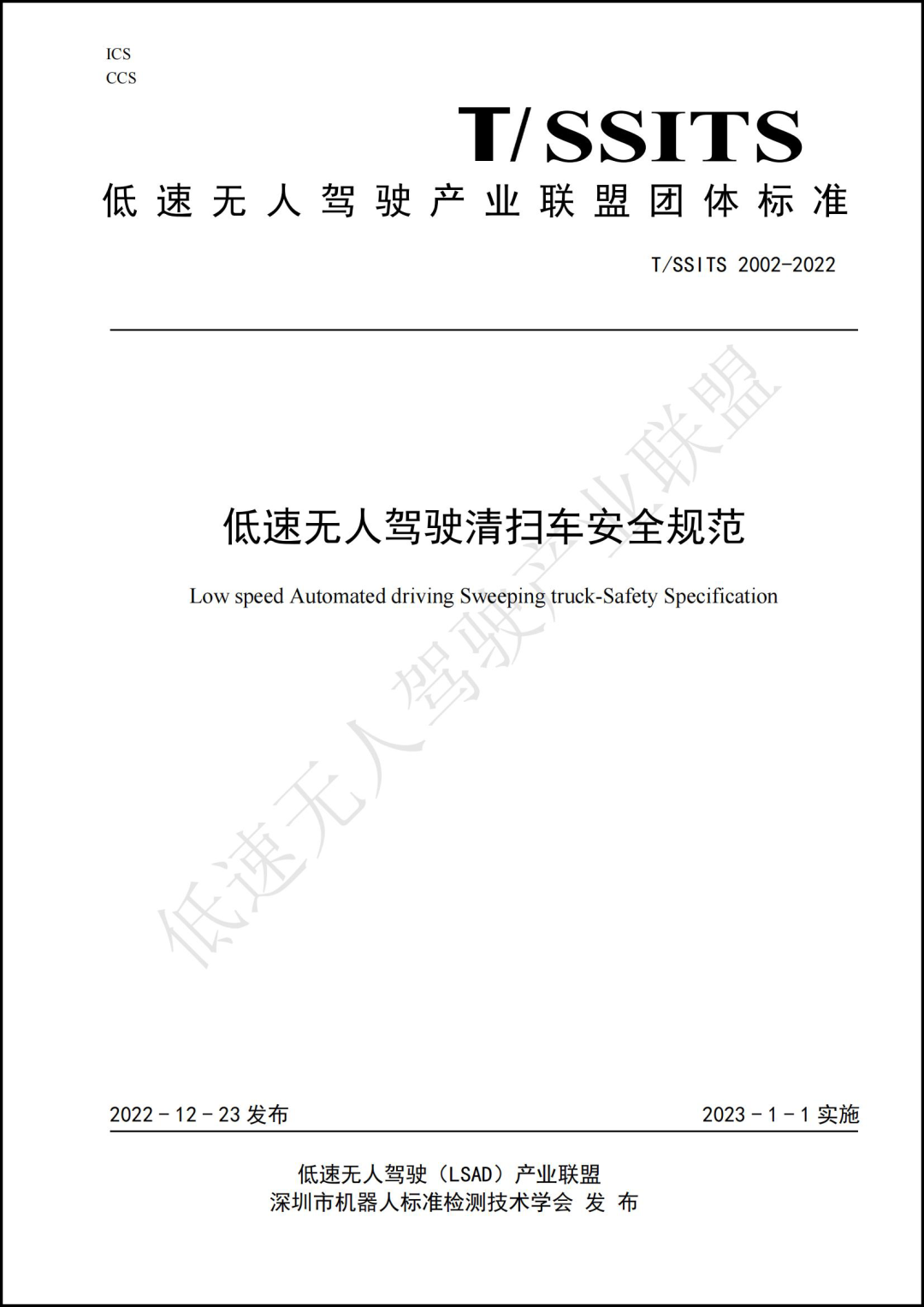 低速無人駕駛產業聯盟關于2023年團體標準立項的公示