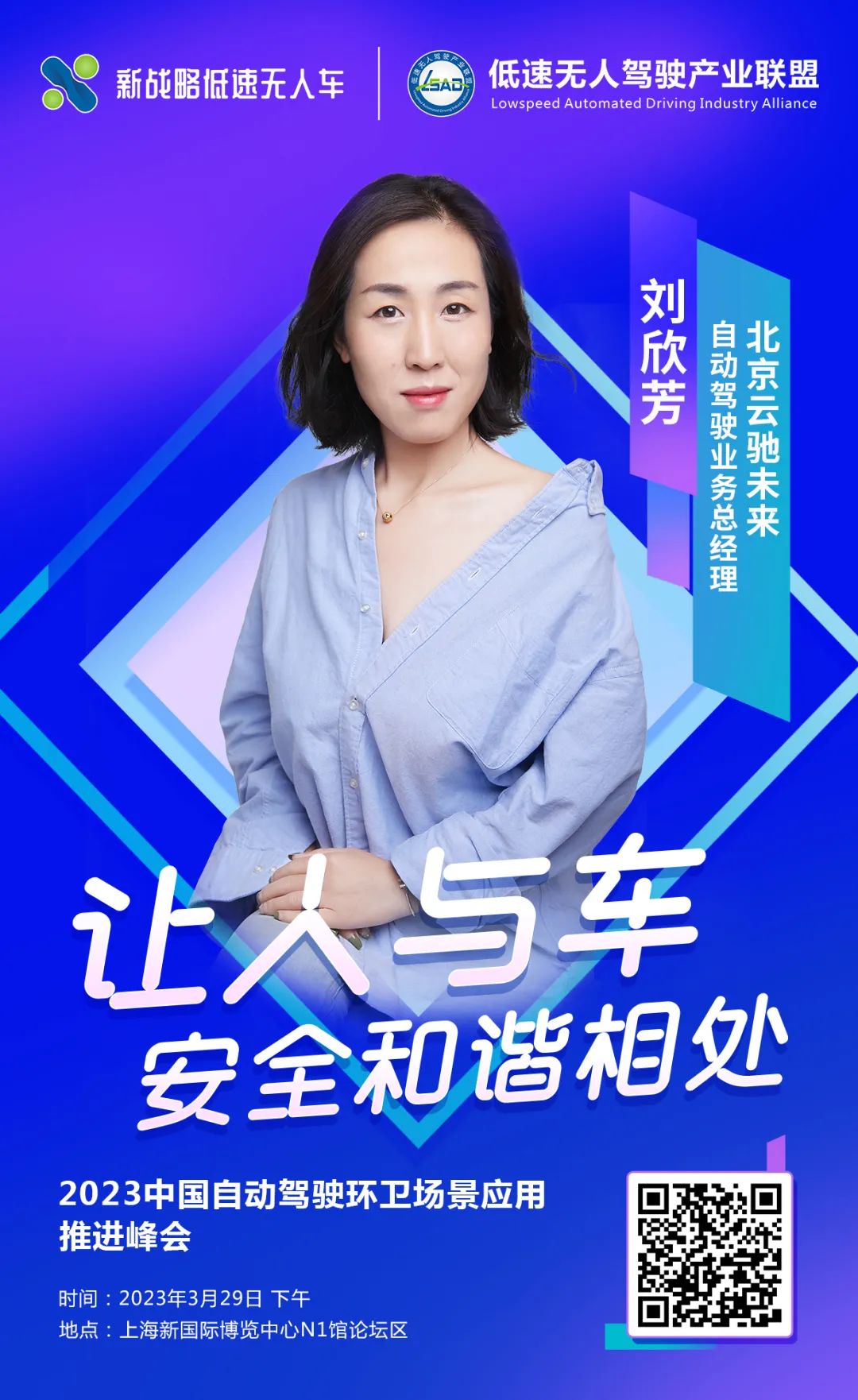 3月29日,在“2023中國自動駕駛環衛場景應用推進峰會”上,云馳未來自動駕駛業務總經理劉欣芳將帶來《讓人與車安全和諧相處》主題演講,敬請期待!