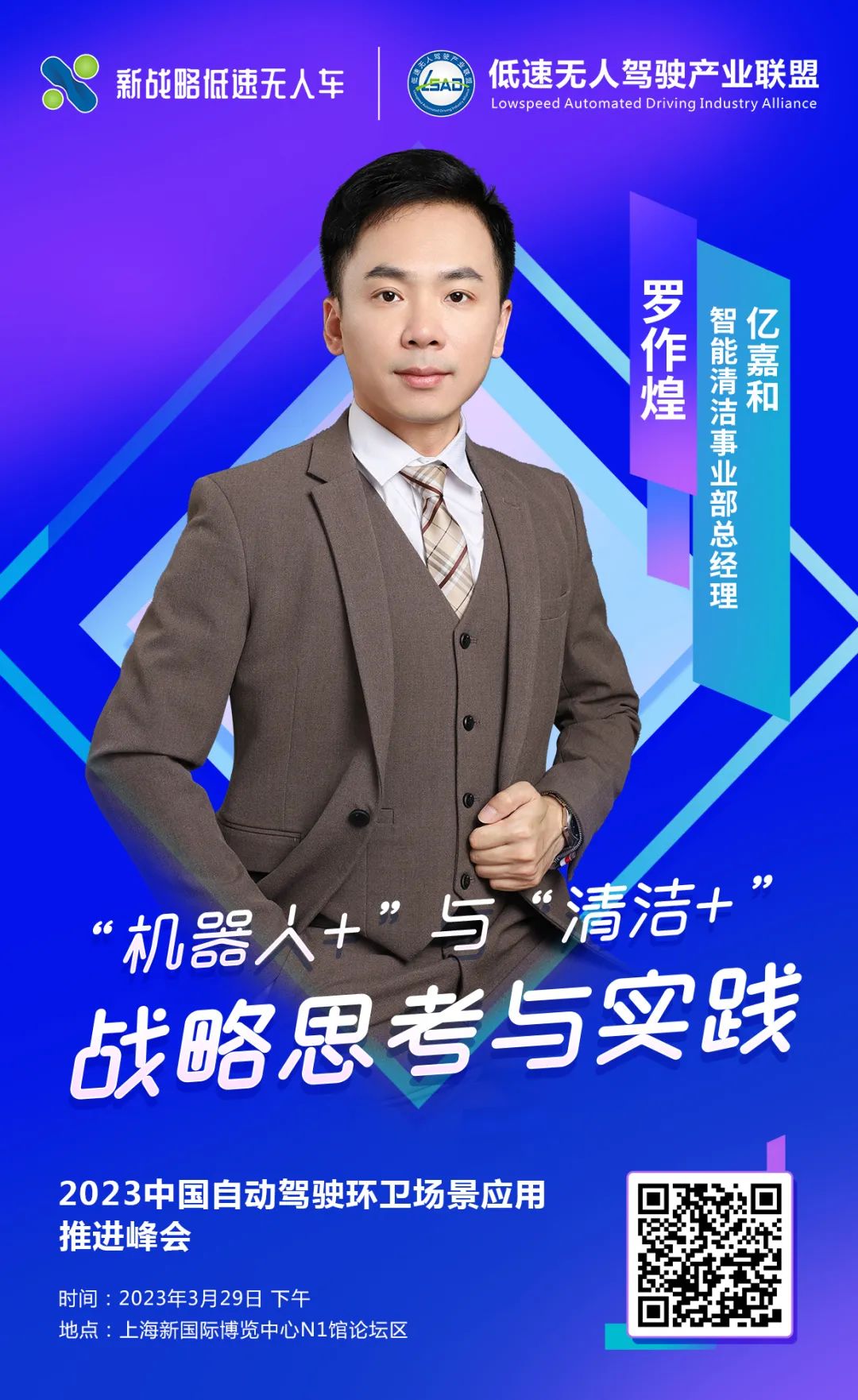 3月29日,在“2023中國自動駕駛環衛場景應用推進峰會”上,億嘉和智能清潔事業部總經理羅作煌將帶來《“機器人+”與“清潔+”戰略思考與實踐》主題演講,敬請期待!
