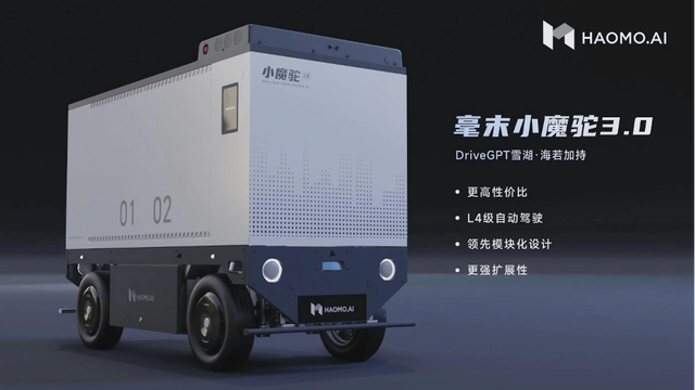 2022年4月,毫末智行正式官宣了單車售價12.88萬元的小魔駝2.0,面向商用市場的末端物流自動配送車產品首次進入到10萬元級別。一年時間后,今年5月,小魔駝3.0正式推出,售價再次下降到8.99萬元,兩代產品價格降幅達30%。