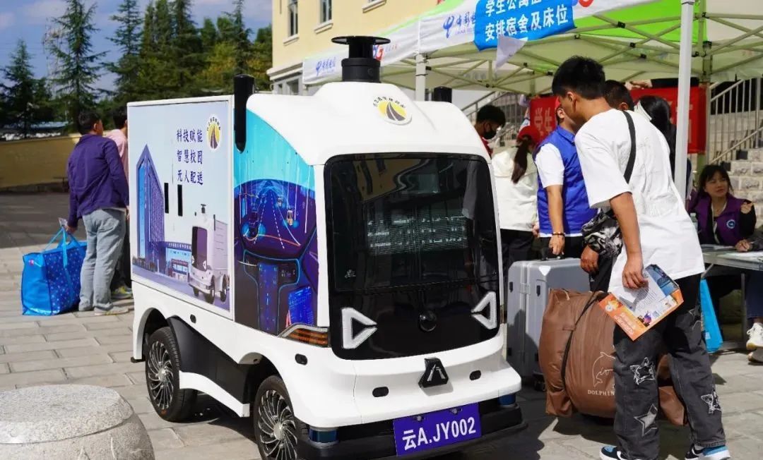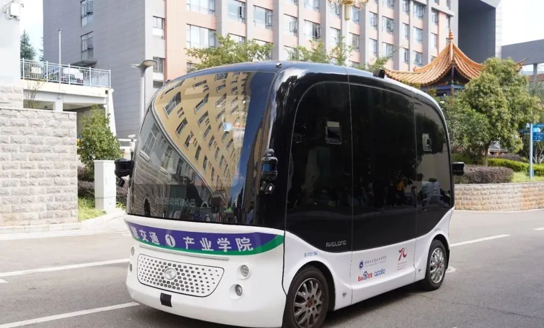 云娜交通運輸職業學院(云南交通技師學院)新生報到期間,2輛多場景智能化阿波龍Ⅱ自動駕駛小巴智能“圈粉”,為新生提供科技感滿滿的智能接送服務。