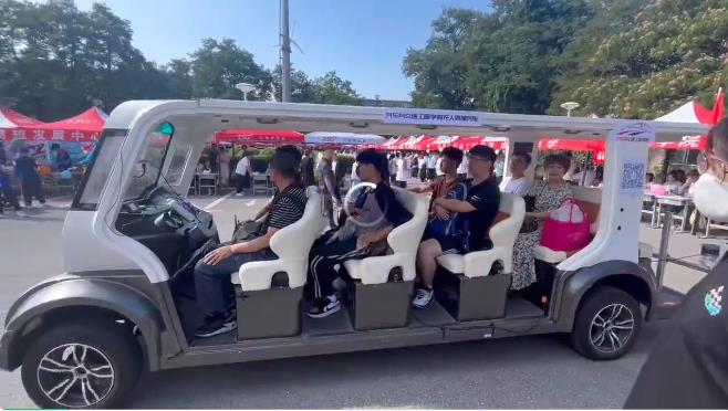 在北京工商大學良鄉校區,無人駕駛巡邏車不僅變身“運送工”幫助新生和家長將行李運送至宿舍,同時無人駕駛車擔任了校園反詐宣傳巡邏員,邊走邊播放反詐視頻。