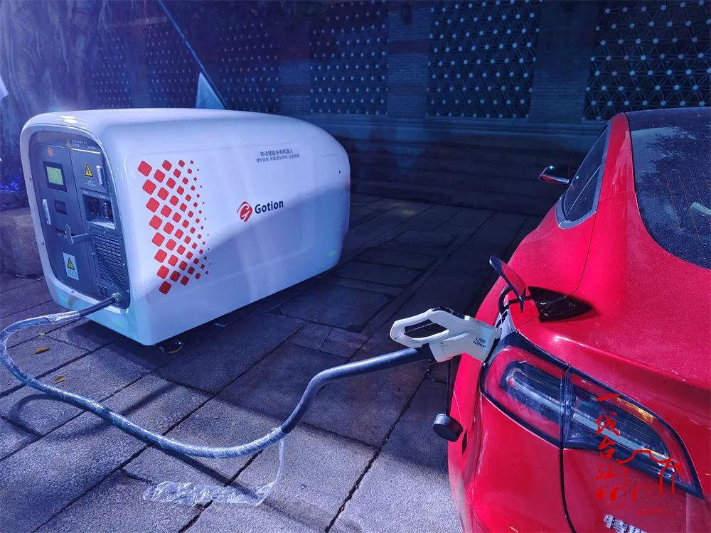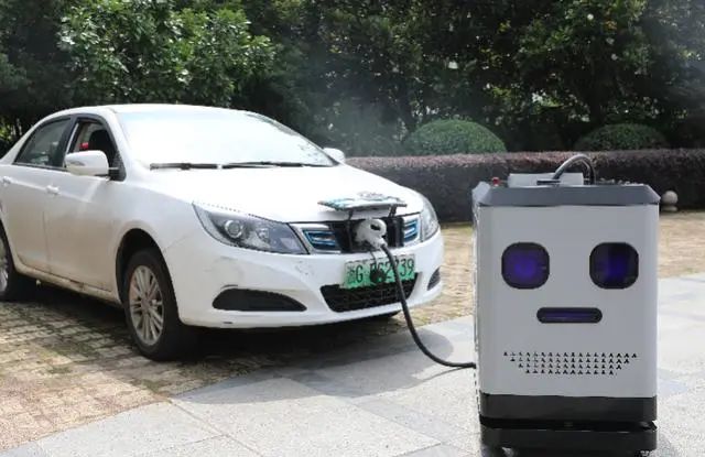 國軒高科研發的全球首款量產智能移動充電機器人,它自重2.1噸,配備4塊鋰電池,用380V電壓充電3.5小時就能為五六輛新能源汽車充電。運用于住宅小區、商業園區、停車場等場景,可降低電網負荷和電價成本。