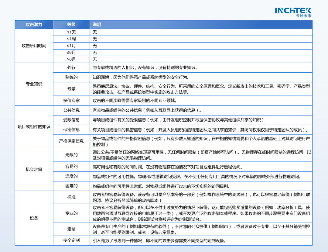 基于攻擊潛力的方法比較全面但不夠具體,所以當我們采用上文所說的自頂向下的攻擊路徑分析方法時,推薦采用基于攻擊潛力的評分方式。
