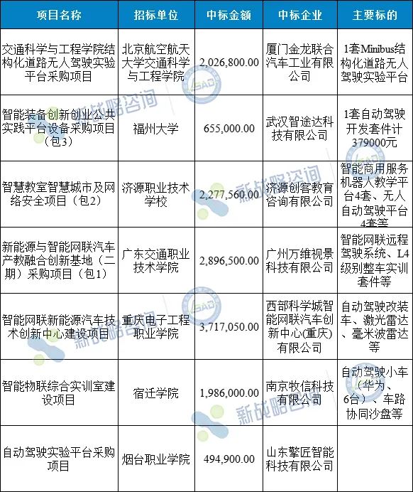 2023年9月部分院校自動駕駛教學教具采購項目(據公開信息,新戰略低速無人駕駛產業研究所不完全統計,未完善之處請指正!)