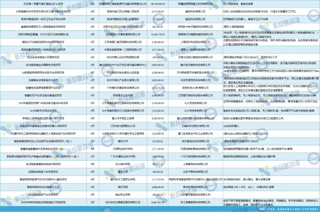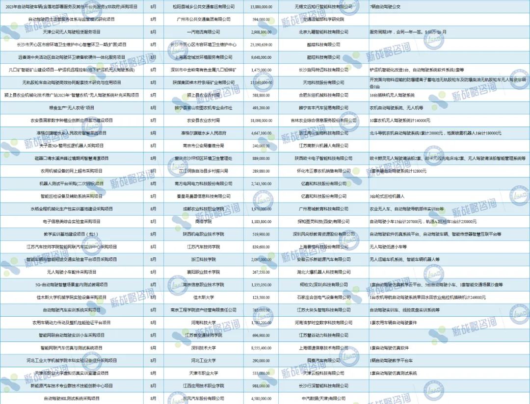 2023第三季度國內自動駕駛中標項目情況(未完善之處請指正)