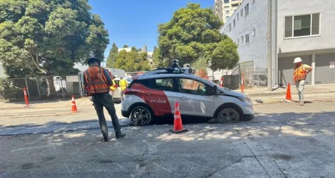 8月15日,一輛Cruise無人出租車誤駛入施工鋪路工地,剛剛澆筑的濕混凝土中,無法移動。隨后Cruise表示,已經召回了這輛車。
