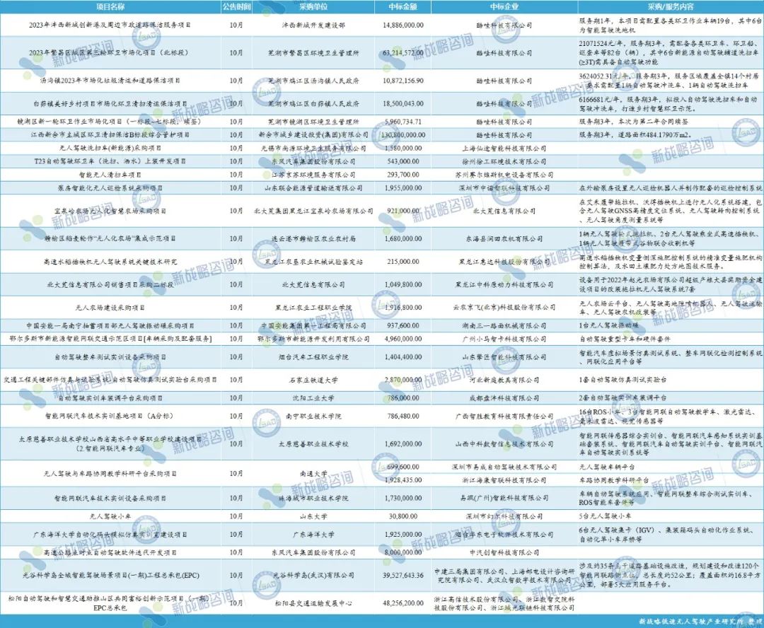2023年10月自動駕駛領域中標項目匯總(據公開信息不完全統計,未完善之處請指正)