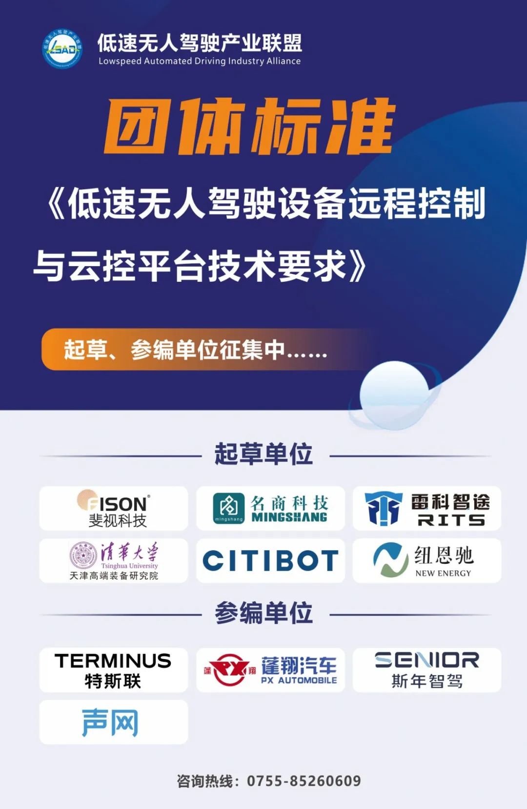 為推動形成遠程自動駕駛技術規范,低速無人駕駛產業聯盟正在組織制定《低速無人駕駛設備遠程控制與云控平臺技術要求》(擬定名)。該標準由長沙斐視科技有限公司、名商科技有限公司、理工雷科智途(北京)科技有限公司、清華大學天津高端裝備研究院、福龍馬城服機器人科技有限公司、湖南紐恩馳新能源車輛有限公司起草,特斯聯科技集團、 山東蓬翔汽車有限公司、北京斯年智駕科技有限公司、上海聲網科技有限公司參編。
