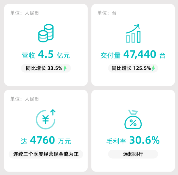 禾賽科技發布第三季度未經審計的財務數據,本季度公司實現營收4.5億元,同比增長33.5%。前三季度實現營收13.2億元,同比增長65.8%。