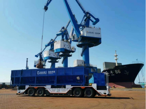 今年6月國唐汽車首臺干散貨無人駕駛集裝箱運輸車落地濰坊港