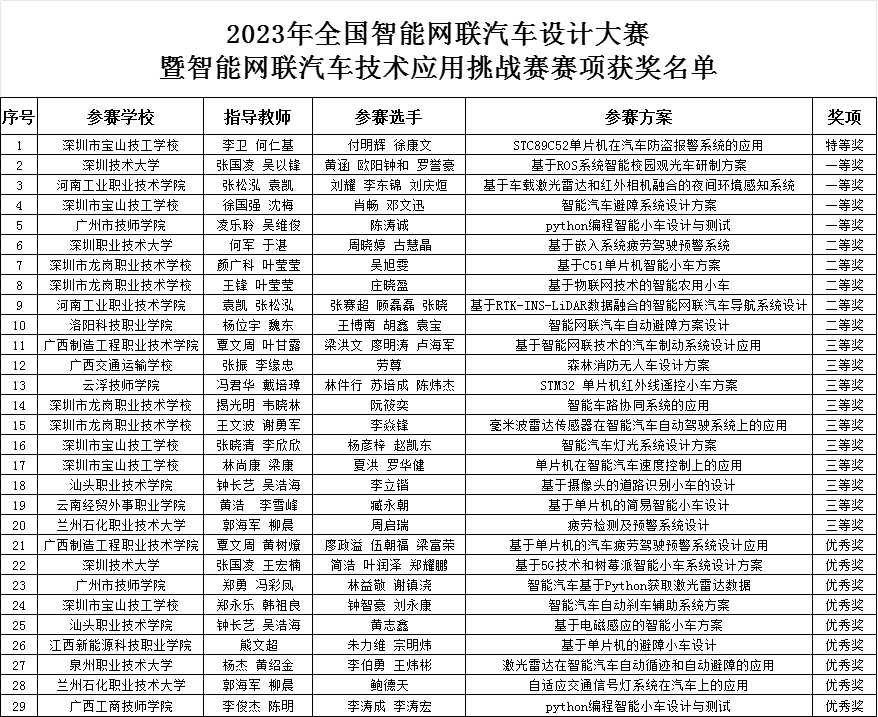 大賽由低速無人駕駛產業聯盟主辦,螞蟻俠科技(深圳)有限公司承辦,旨在推動智能網聯汽車技術科研創新,加快高校科研成果的應用轉化,助力行業培養和輸出高水平應用型人才。本次大賽共收到122份來自全國各院校的參賽設計稿,最終有16所高校的29個團隊獲獎。