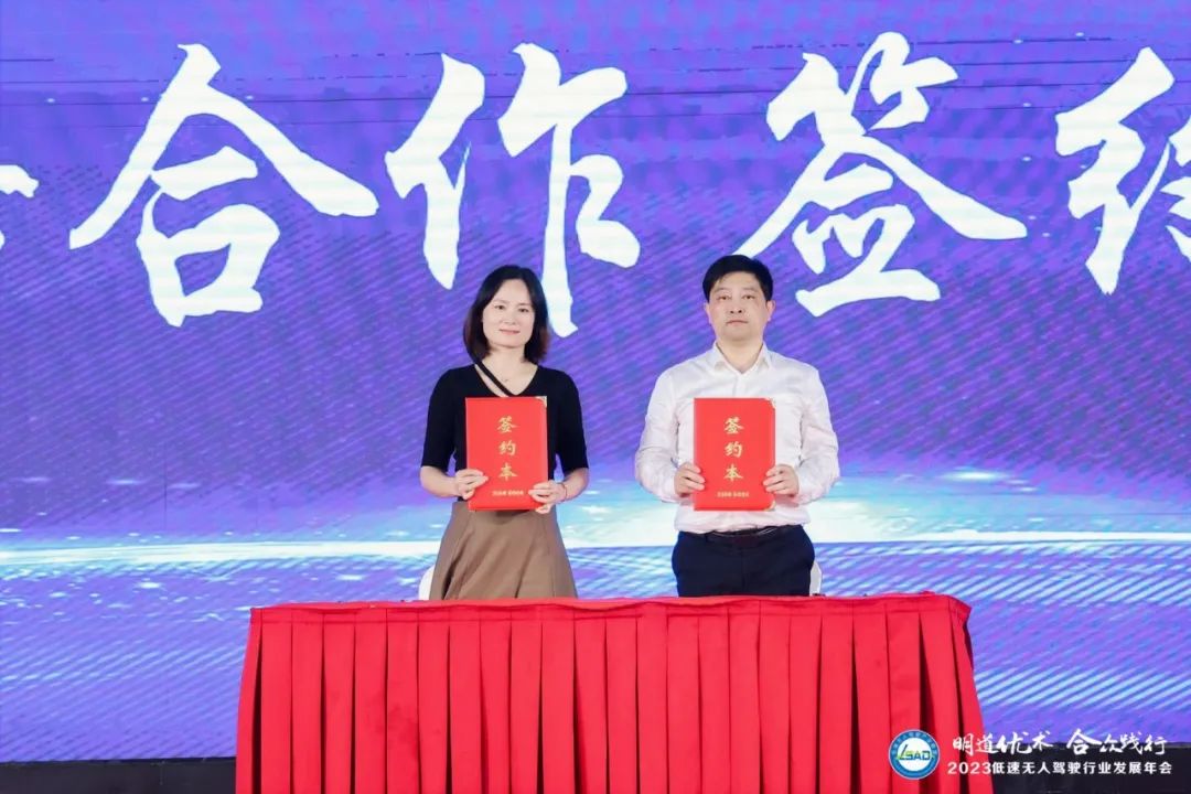 在2023低速無人駕駛行業發展年會上,新戰略公共服務事業部和陸家鎮人民政府代表現場簽署了戰略合作協議,雙方將進一步深化聯系,為低速無人駕駛聯盟企業在該鎮的業務布局、應用落地等暢通溝通渠道。